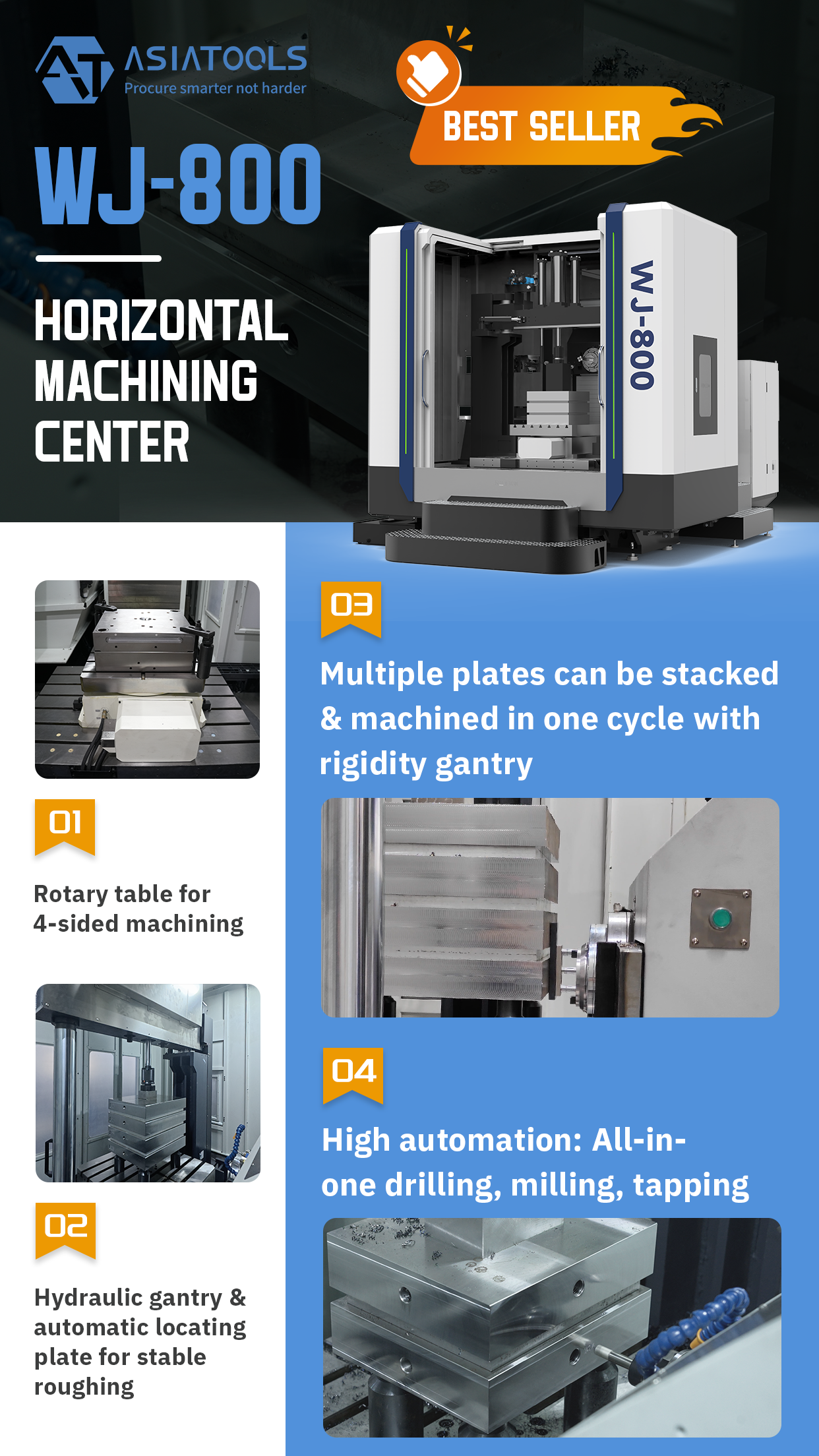 While standard HMCs offer the benefits listed above, the ASIATOOLS WJ-800 takes efficiency a step further with specialized features designed for heavy-duty stability and automation.