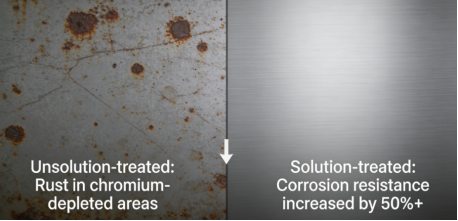 It’s a high-temperature heat treatment process: heat stainless steel to 1050-1150℃ to dissolve precipitated carbides and other impurities into austenite, then rapidly cool (quench) to lock the uniform single-phase structure, restoring the material's original excellent performance.