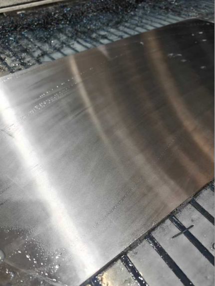 Even then, feed rate can barely reach 1,200 mm/min. To machine a 600 × 500 mm bottom plate flat on both sides and clean up the edges, it takes about 2.5 hours with 45 steel. The operator can then remove the clamps and take the plate straight off the table.